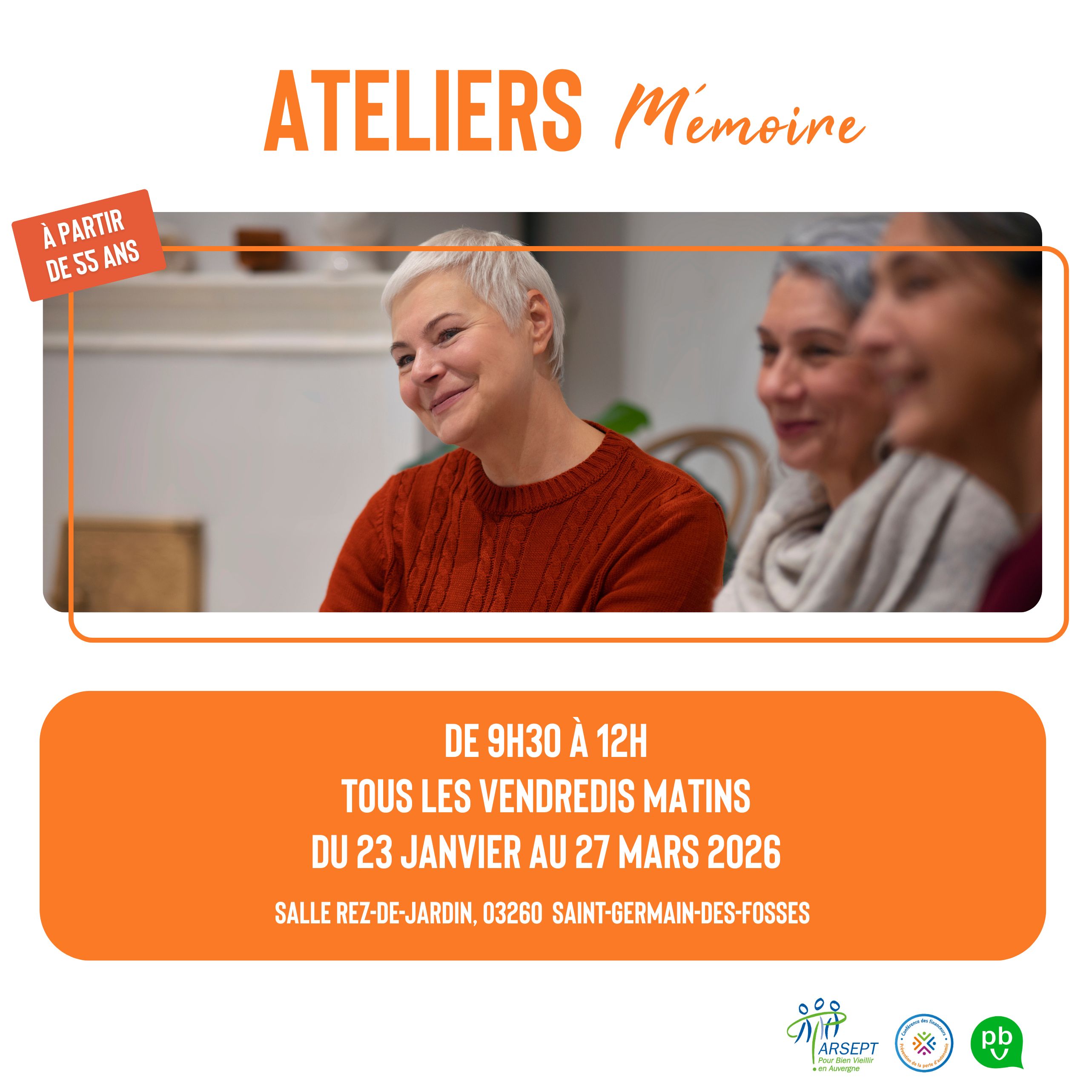 ven 23/01/2026 - 09:30 Atelier en présentiel Tous les vendredis matins du 23 janvier au 27 mars 2026 De 9h30 à 12hSalle Rez-de-Jardin, 03260 Saint-Germain-des-fossés Il n'est pas possible de s'inscrire