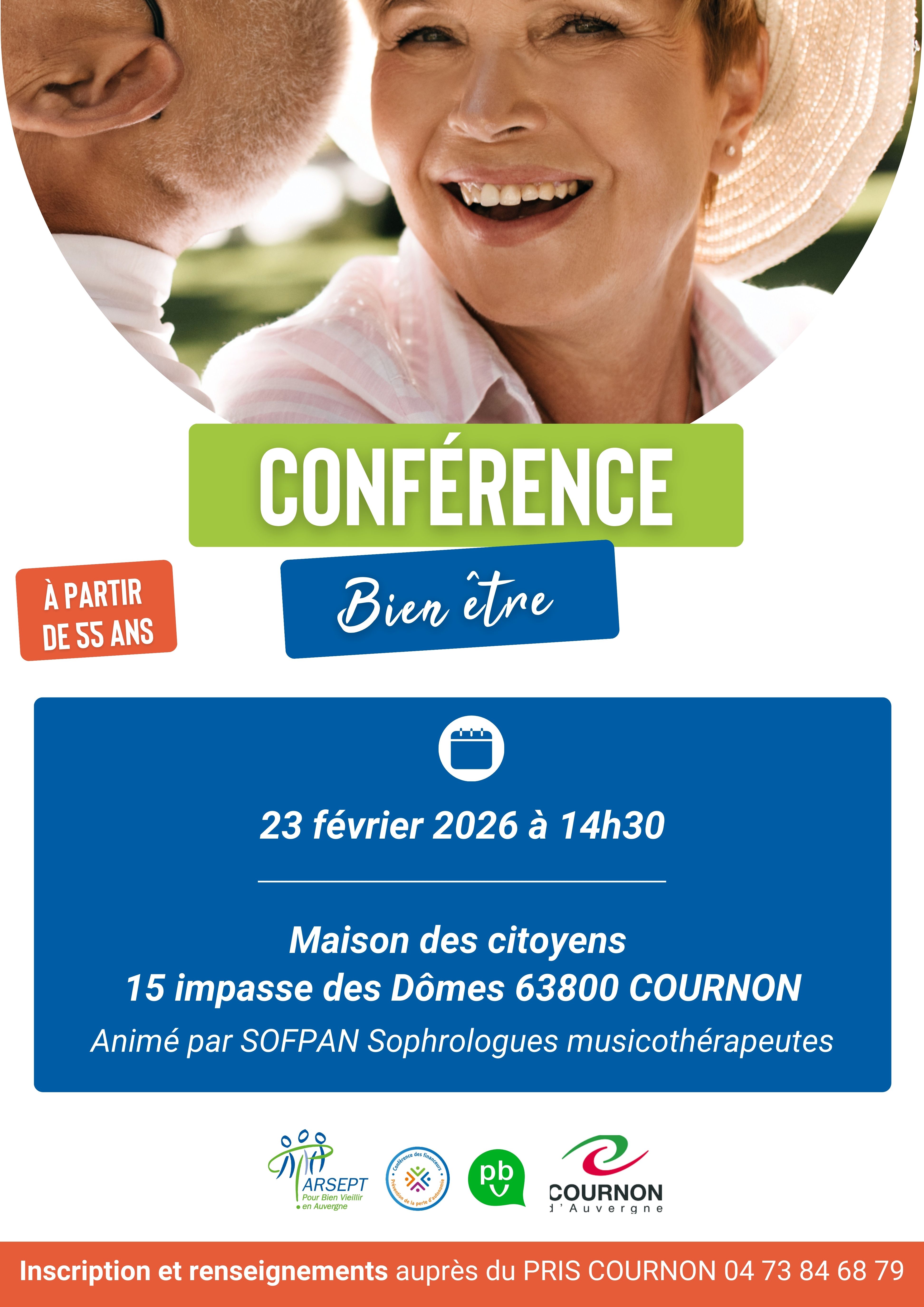 lun 23/02/2026 - 14:30 Conférence Lundi 23 février - À 14h30 Maison des Citoyens, 15 impasse des Dômes 63800 Cournon d'Auvergne--> Inscription et renseignements auprès du PRIS COURNON 04.73.84.68.79 Il n'est pas possible de s'inscrire